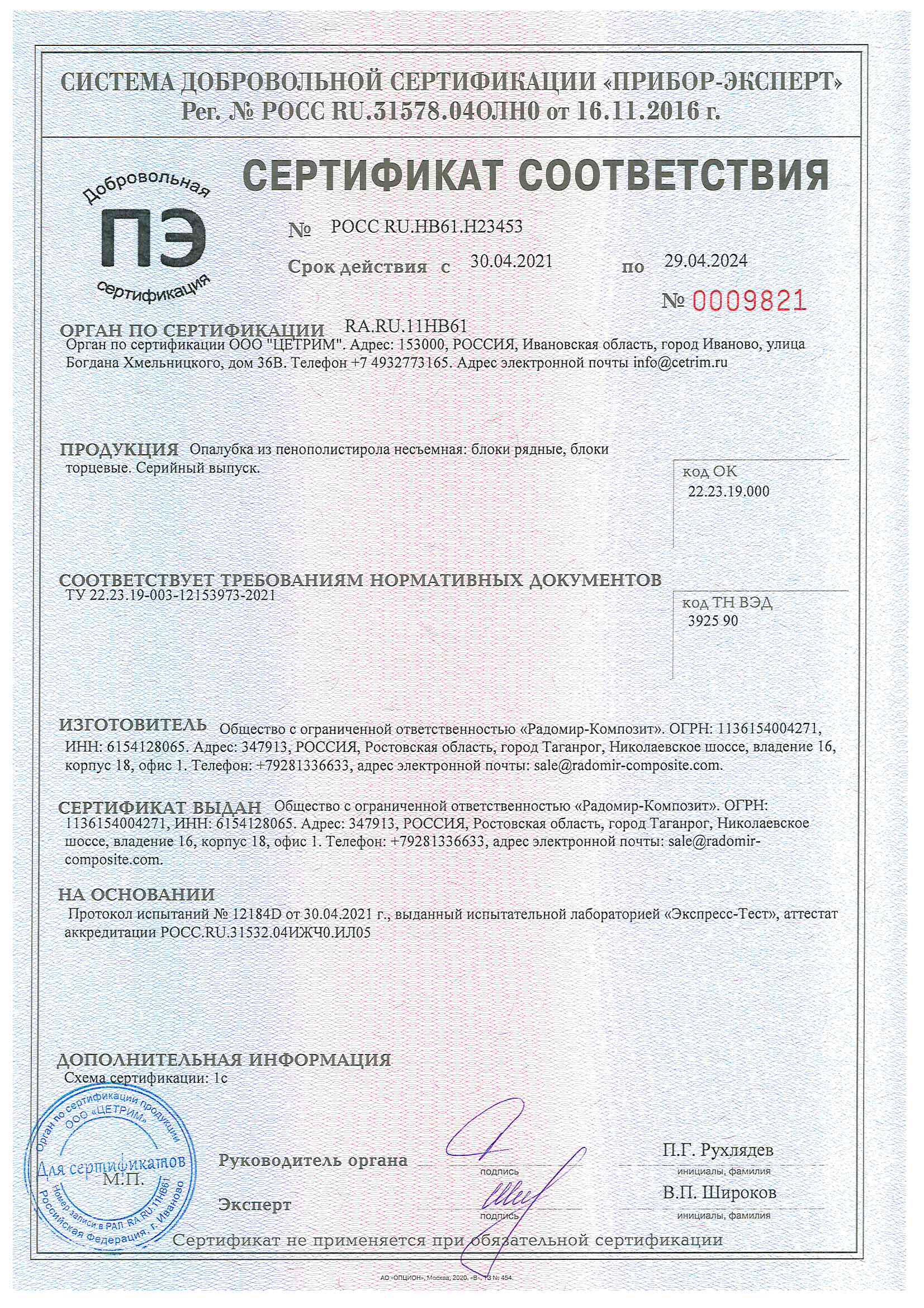 По содержанию наиболее опасных веществ – стирола и формальдегида, несъемная опалубка укладывается в нормы.
